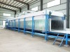 QHF-2009 Horizontal Continuous Auto-foaming Production Line can change the foaming materials without turning off, the flow is automatically checked. The allowable error of large material is 0.01 to 0.03 kg, the allowable error of small material is 1 to 3 g. This machine is mostly used for producing Britain high resilience foams, slow resilience foam for shoes, electric foams, brassiere cotton etc. The anti-yellowing degree can reach 3 to 5 grade of national standard, hardness is 20 º to 200 º , powder amount can be 10% to 250%, the mimimum foam density is 6 to 100. We can train the senior foaming technician for factory and supply all kinds of formula according to customer’s requirment.The whole machine part specification 1.Machine size : L33M*W4M*H3 2.Oven declining board: L6.8*W0.98 2.30M 3.Oven side links: L18*W2.3*H1.2M 4. Oven machine frame L18*W4*H3m 5.Oven inner conveyer line L18*W2.3*H0.83 6.Foam width: 980mm 2350mm 7.Foam height:Max1300mm 8.Foam density: 8kg/m3 100kg/m3 9.Max output: 300kg/min 10.Total power: About 90 kw